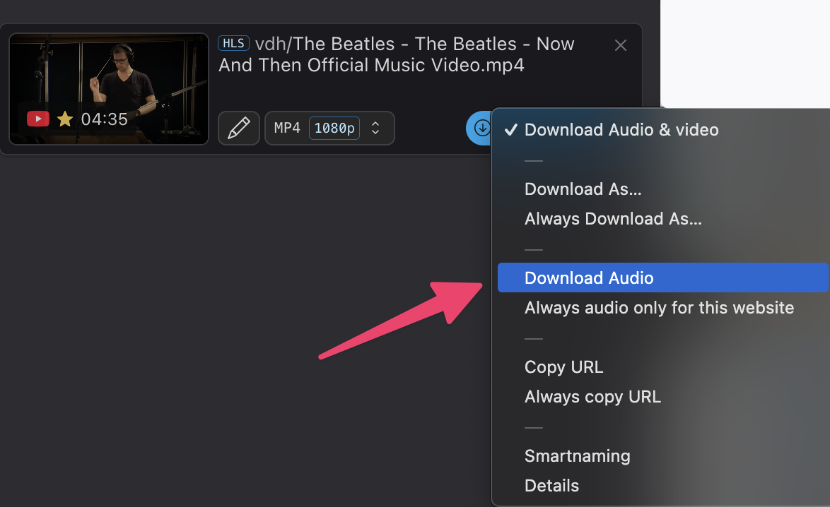 Click on the 3 dots button and then choose Download Audio.